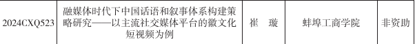 2024CXQ523 融媒体时代下中国话语和叙事体系构建策略研究--以主流社交媒体平台的微文化短视频为例 崔璇